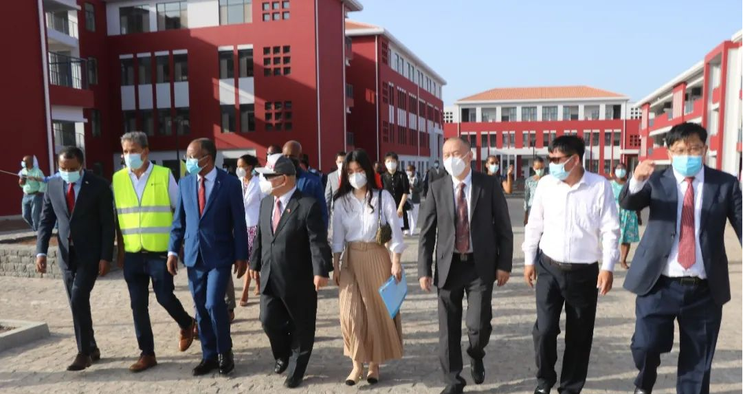 移交儀式之前,中國駐佛得角使館杜小叢大使、黃登平參贊、佛得角總理席爾瓦等一行先后參觀了教學(xué)樓、服務(wù)中心、中心圖書館、宿舍樓、行政樓,詳細了解了校區(qū)設(shè)施設(shè)備情況,高度評價工程質(zhì)量、功能齊備,設(shè)備先進。